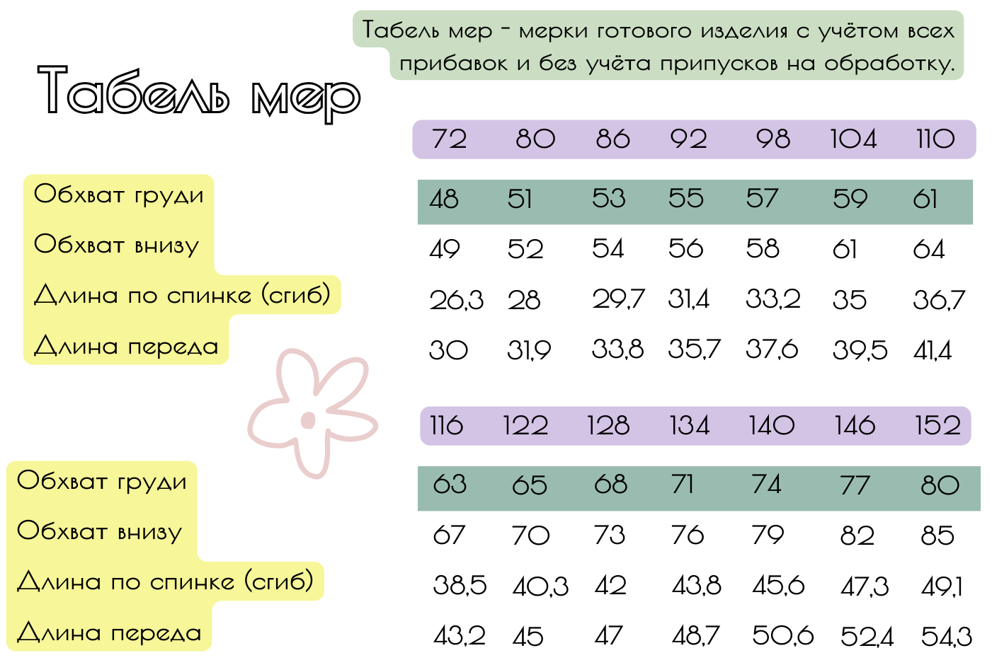 ! Выбирать размер необходимо по мерке обхвата груди из таблицы "Размерные признаки" !