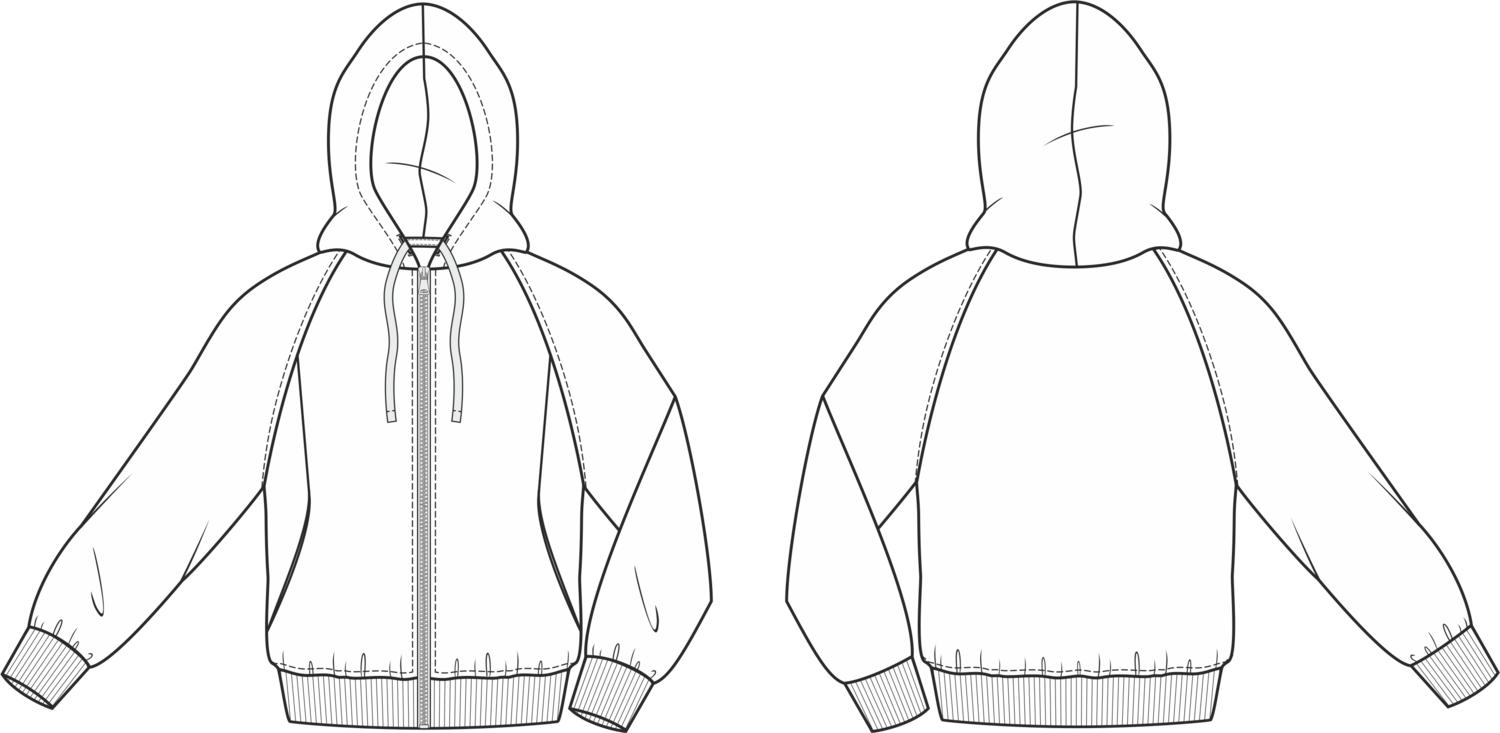 - кофта прямого силуэта, умеренного объёма, с застёжкой на молнию по центральной части переда.