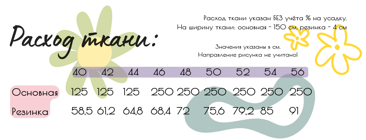 Благодаря большой прибавке на свободу и высокой линии сидения для пошива подойдут любые ткани: хлопковые, шёлковые, трикотажные, с утеплителем - ЛЮБЫЕ!