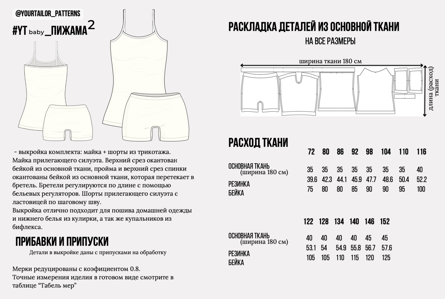 Выкройка отлично подходит для пошива домашней одежды и нижнего белья из кулирки, а так же купальников из бифлекса.