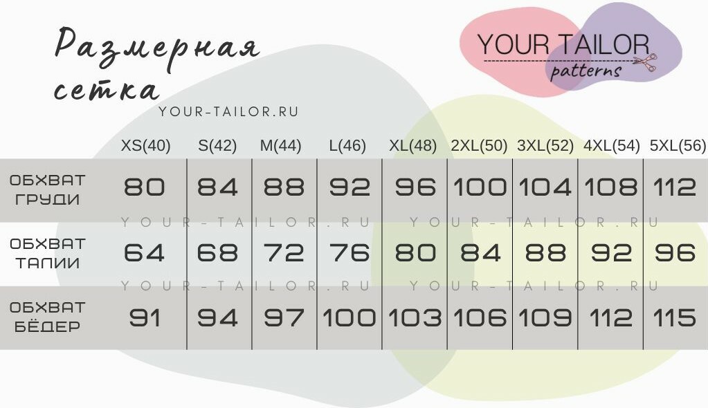 Выкройка доступна в размерах от 40 до 54.