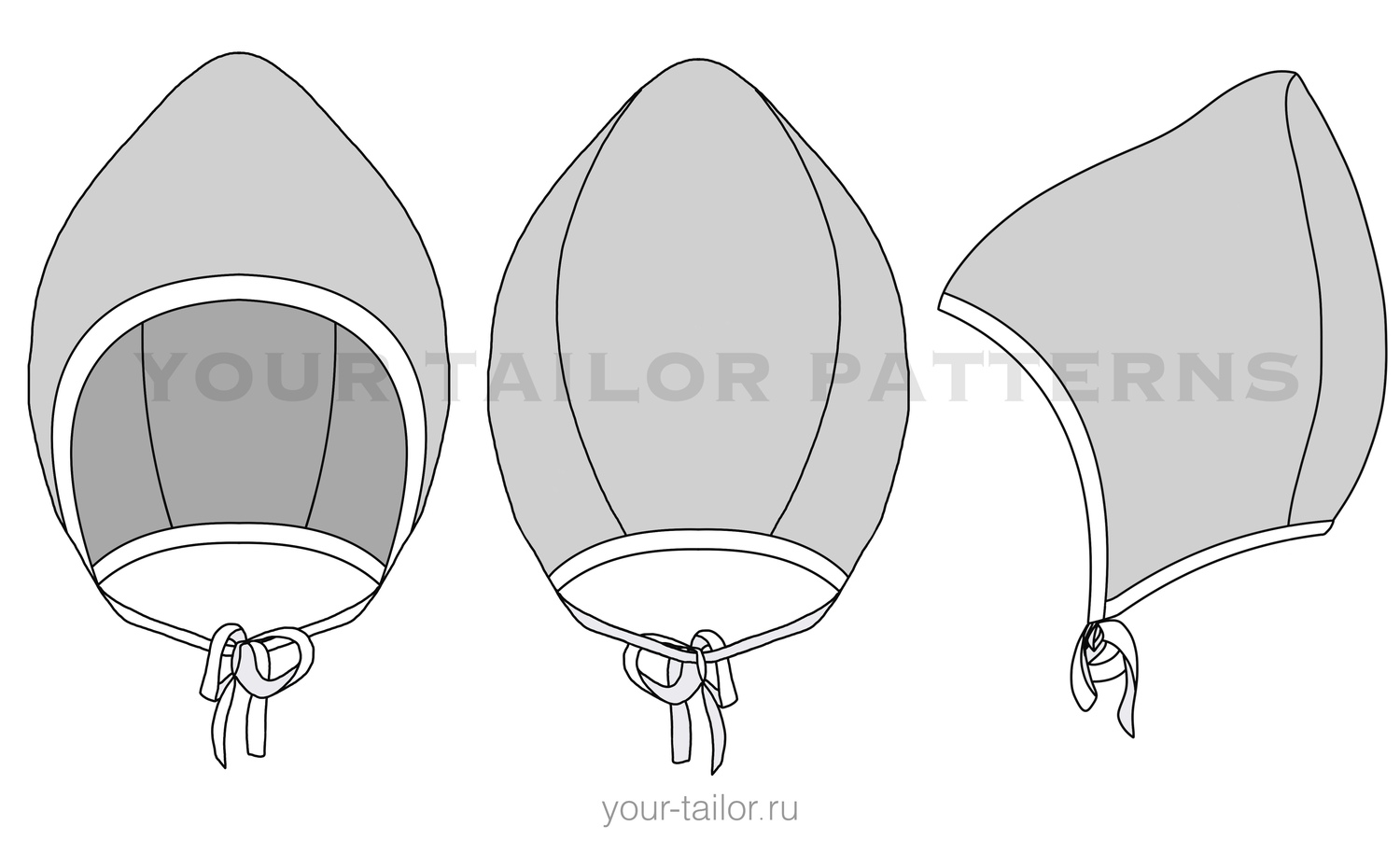 Выкройка состоит из дух деталей: затылочная часть и основная. Края окантованы притачной бейкой.