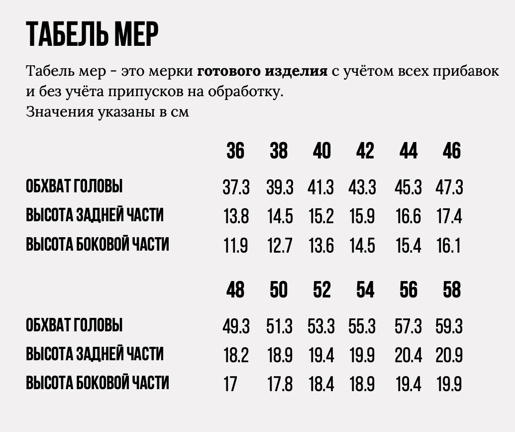 Прибавка к обхвату головы (ОГ) 1.3 см