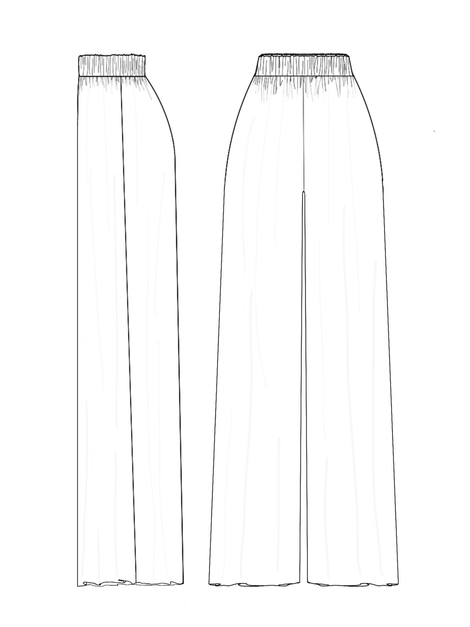 Пижамные брюки - брюки прямого кроя, с завышенной посадкой и поясом на резинке, ширина пояса 3 см. Брюки имеют большой объём.