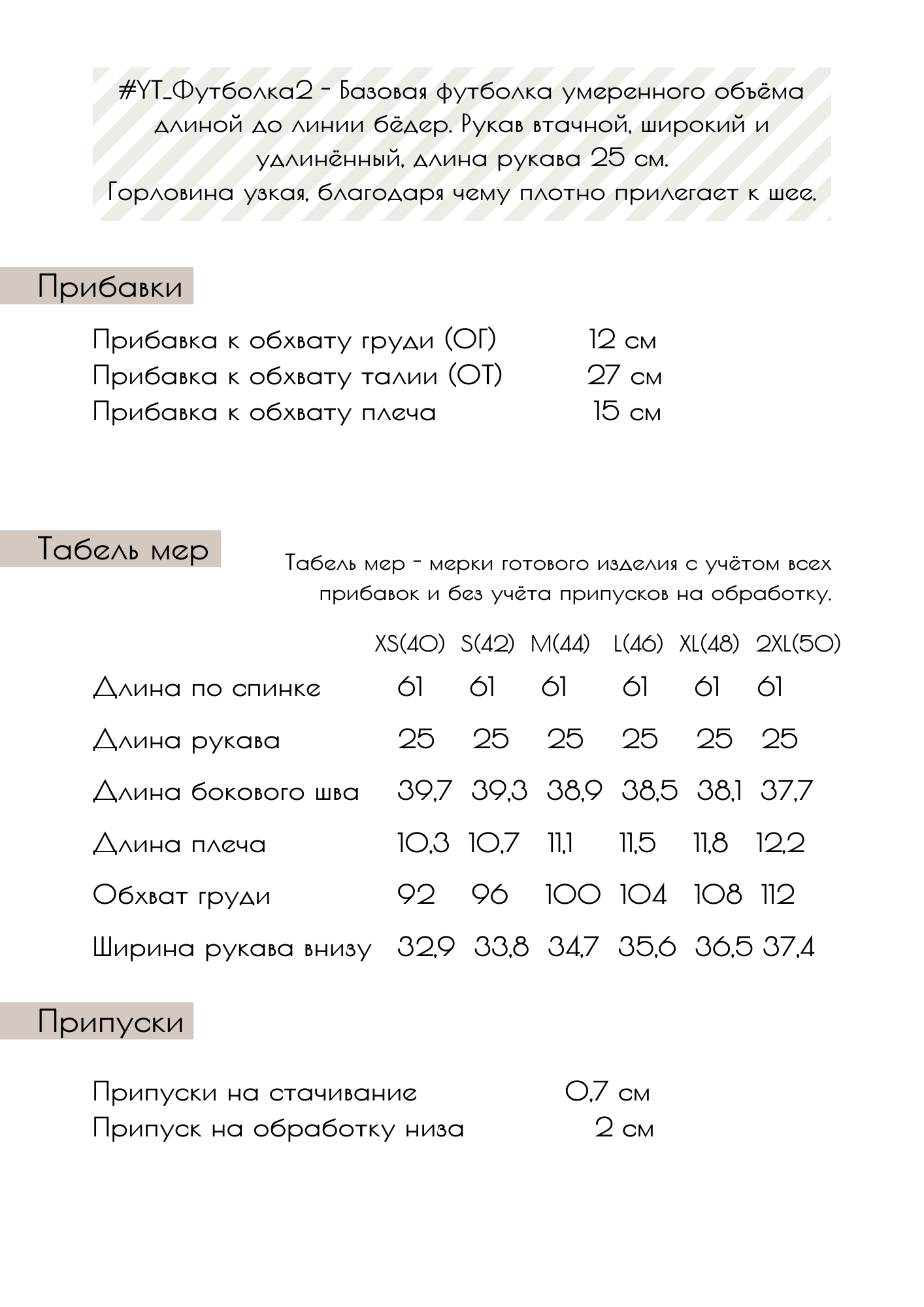 #YT_Футболка2 - Базовая футболка умеренного объёма длиной до линии бёдер.