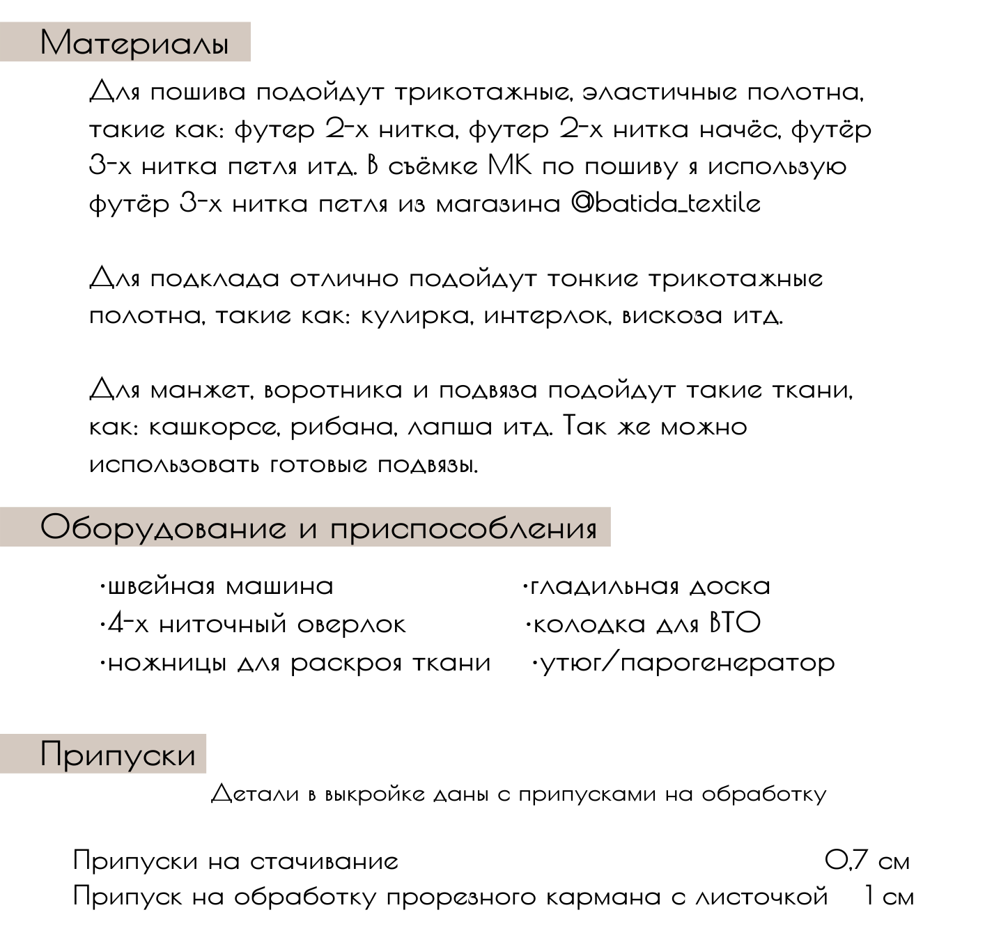 Всю необходимую информацию о расходе ткани, раскладке деталей и пр. вы найдёте в файле