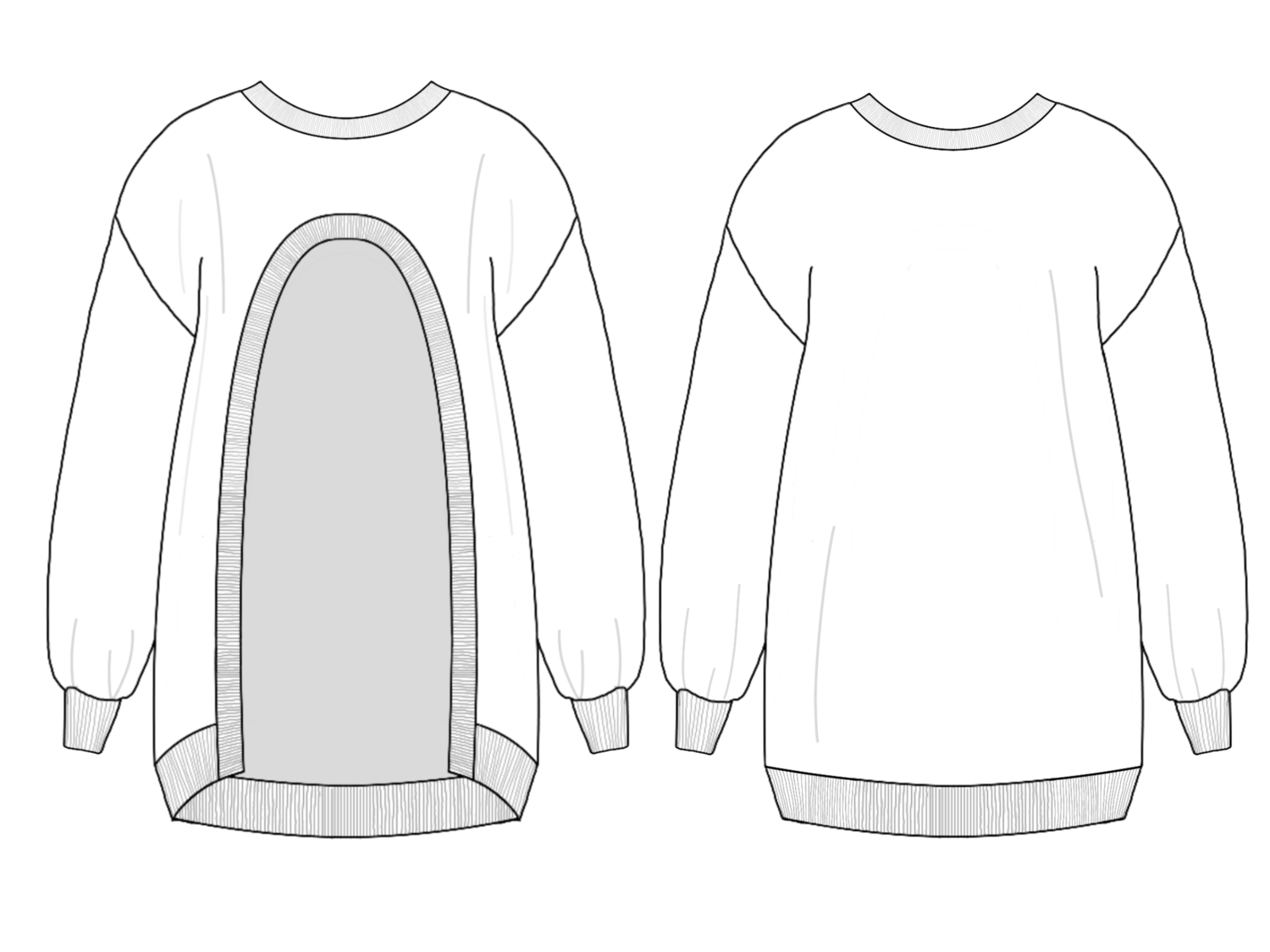 Свитшот двустороний, его можно носить вырезом как вперёд, так и на спинку..