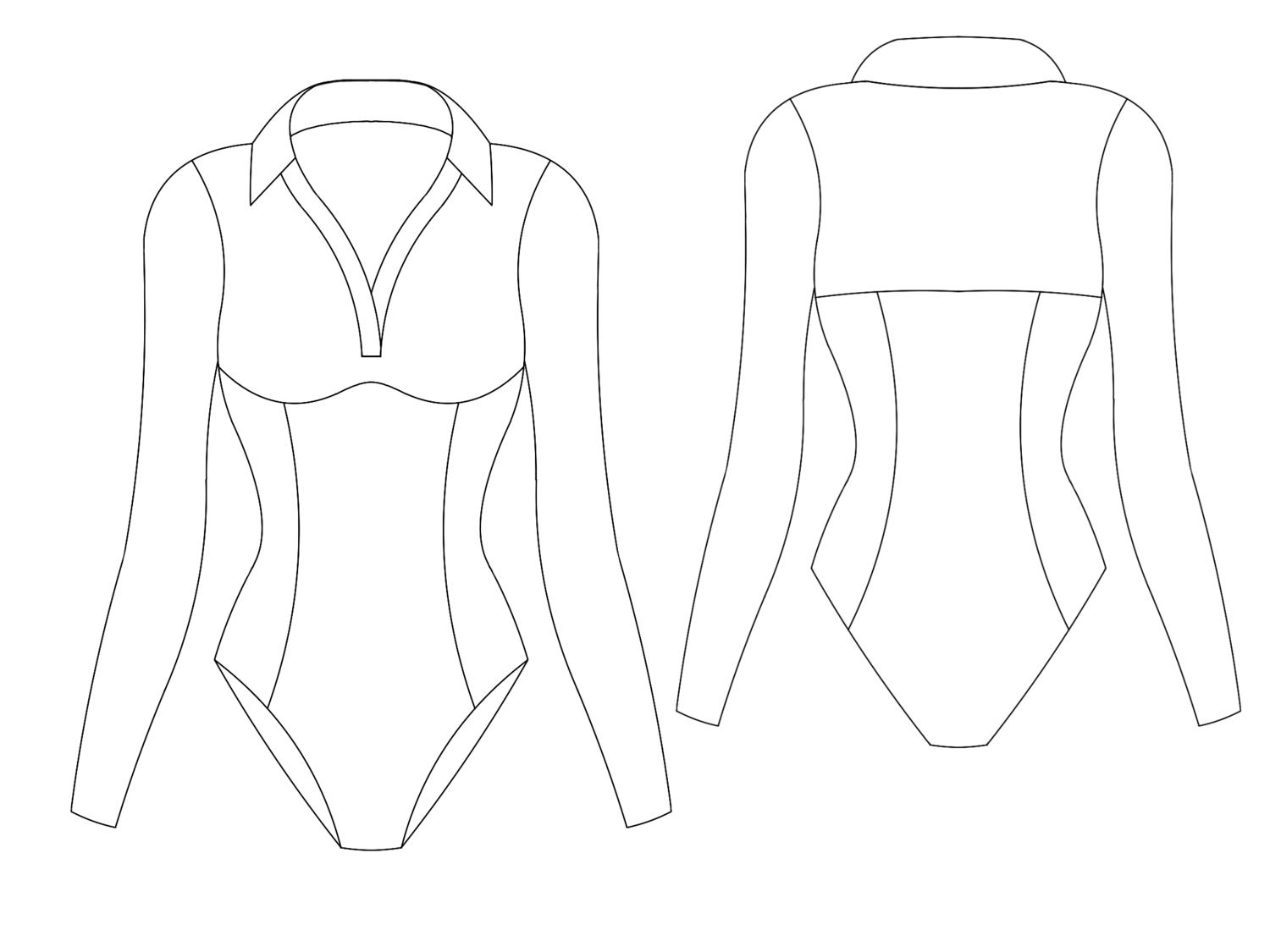 - боди прилегающего силуэта, с горизонтальным фигурным членением и рельефами по передней части и спинке.