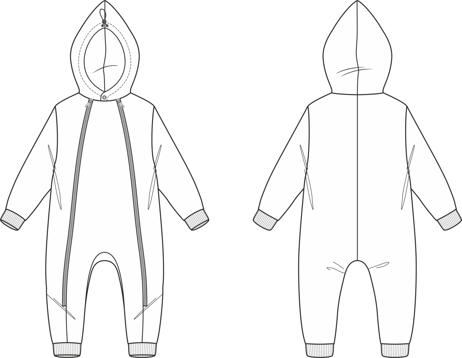 Комбинезон на подкладке, все швы спрятаны внутри.
