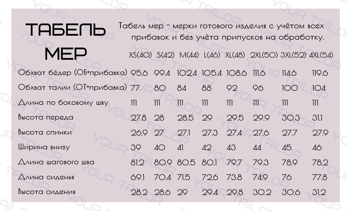 !Выбирать размер необходимо по мерке ОБ (обхвата бёдер)!