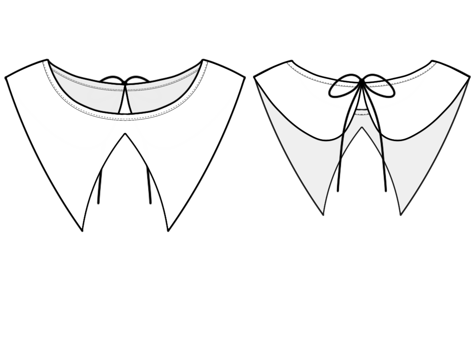 Горловина окантована бейкой, бейка продолжается в завязки.