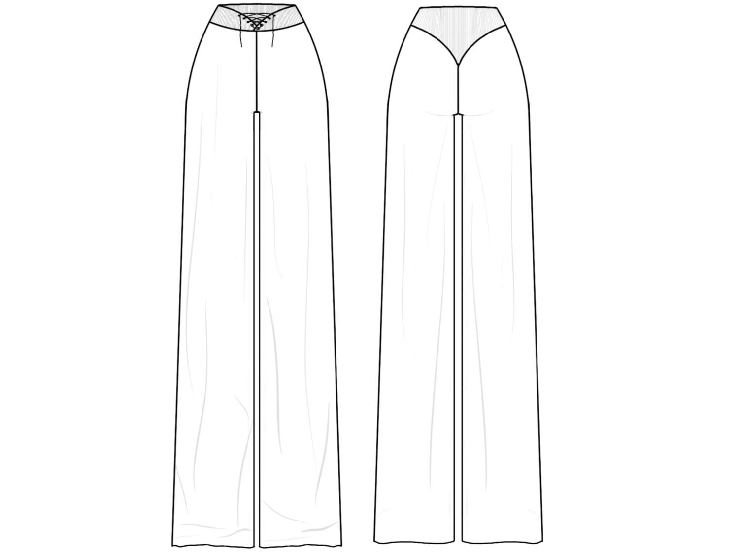 Пояс притачной с запахом по передней части и утяжкой на люверсах и шнурке.