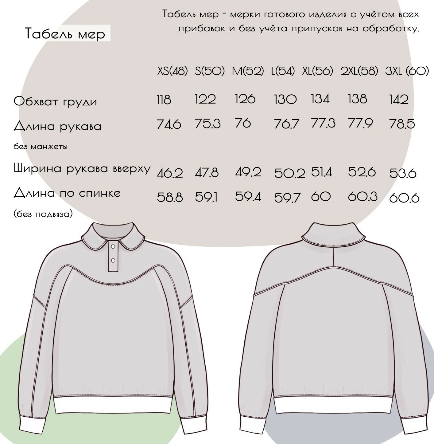 - лонгслив прямого силуэта, с большой прибавкой на свободу облегания, длиной до линии бёдер.
