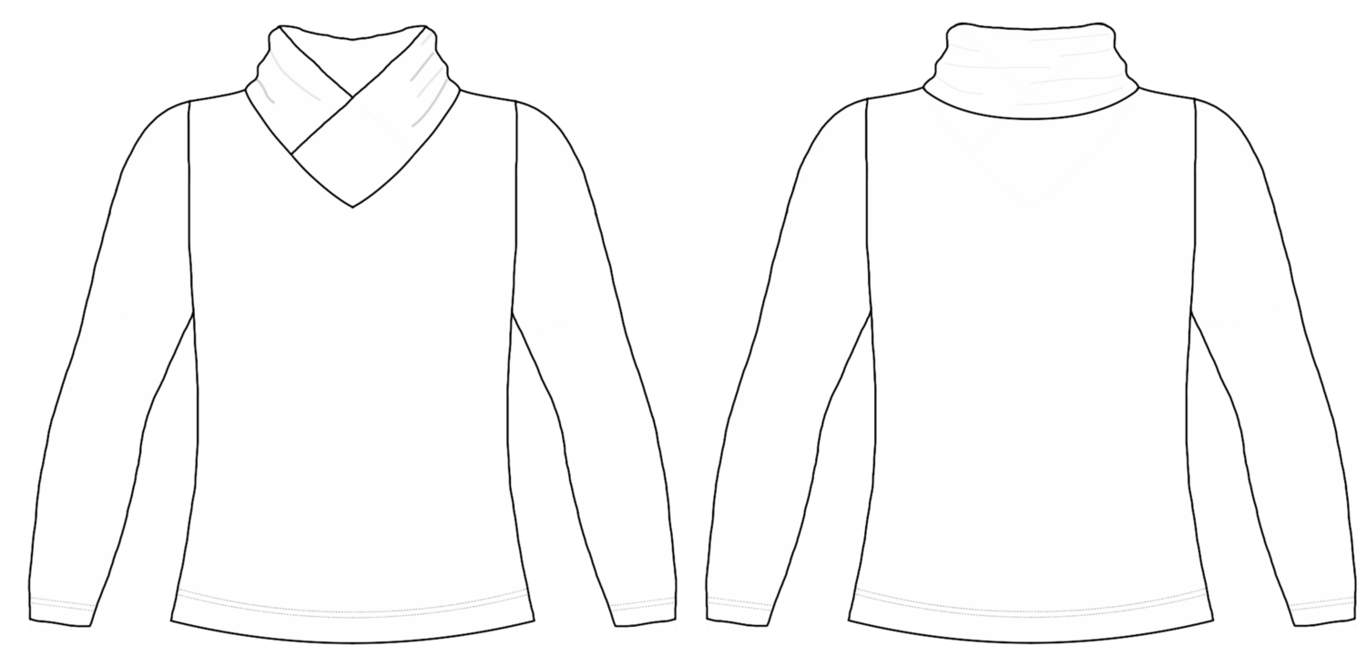 В комплекте выкройки предложены 2 вариации: водолазка (высокий ворот и длинный рукав) и футболка (низкий ворот и короткий рукав)
