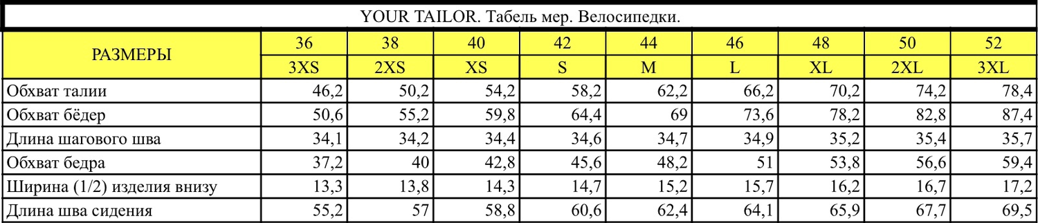 *ТАБЕЛЬ МЕР - МЕРКИ ГОТОВОГО ИЗДЕЛИЯ С УЧЁТОМ ВСЕХ ПРИБАВОК