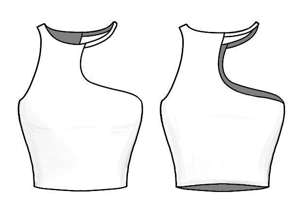Топ двусторонний, потому вырез можно носить как на левую сторону, так и на правую.